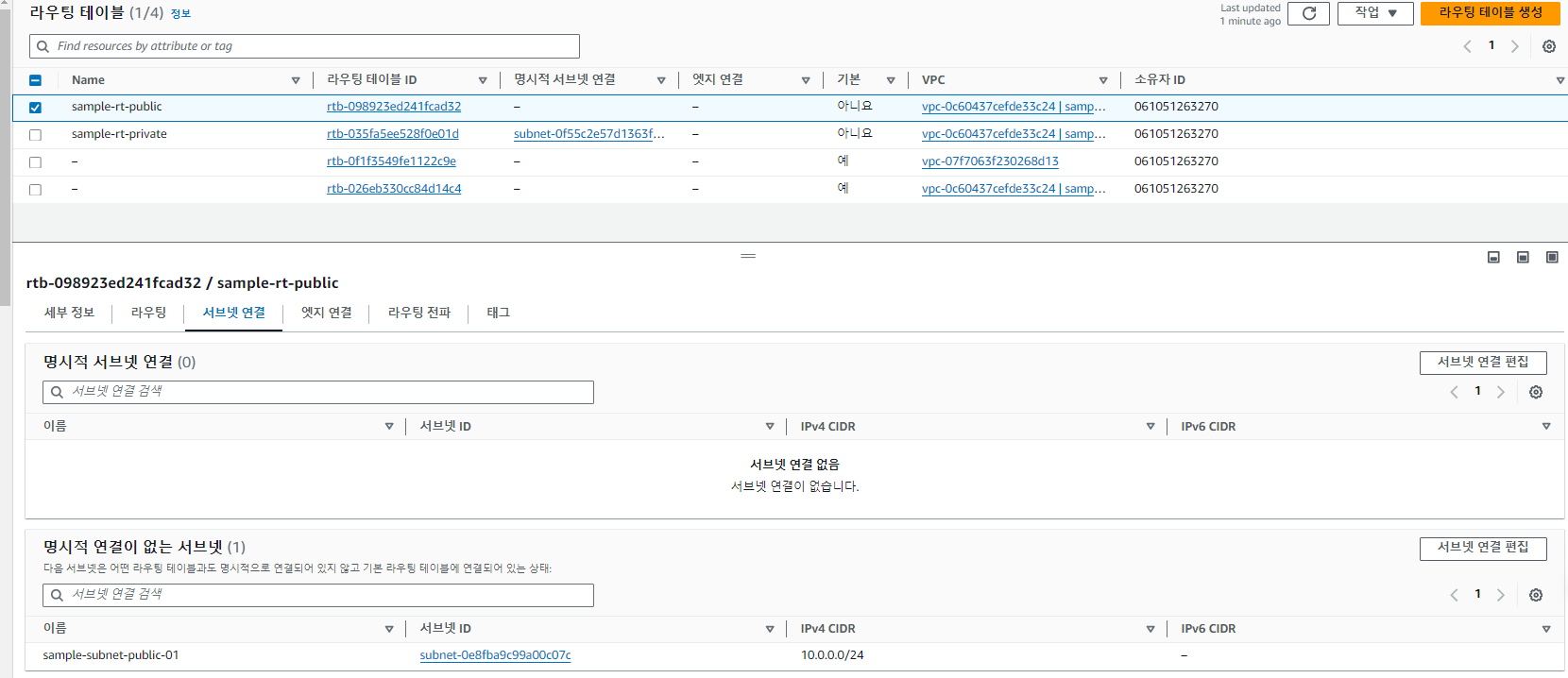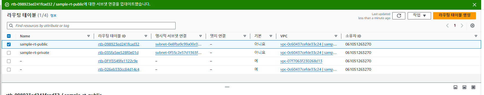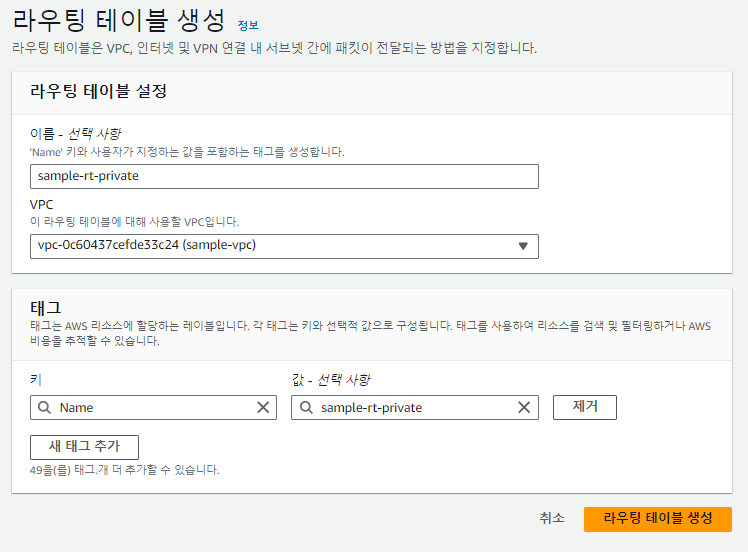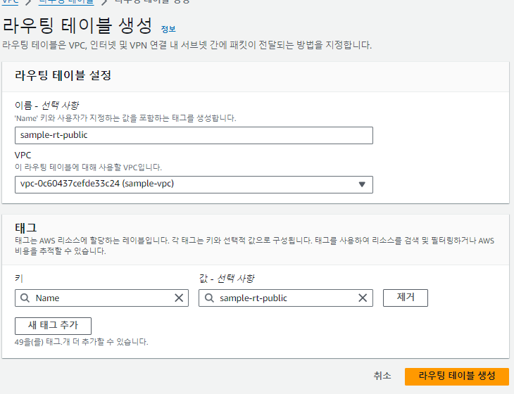 라우팅테이블 만들기 public - > sample vpc