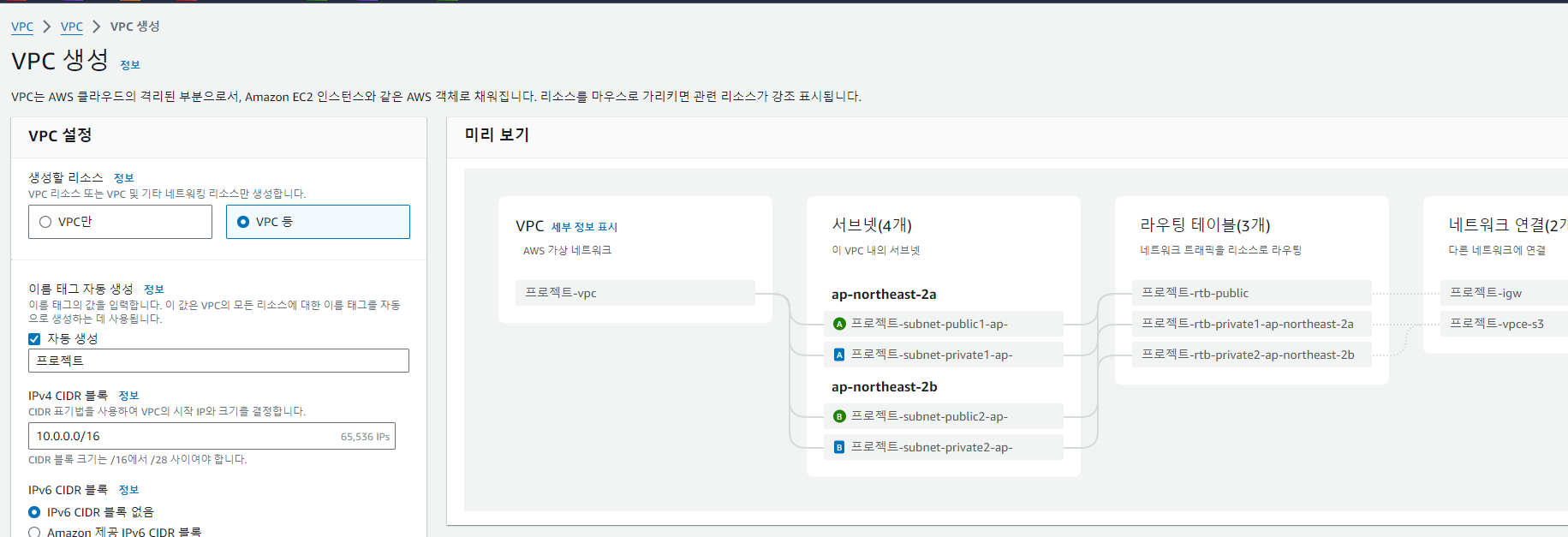 vsmple-vpc에 연결하여 , 생성완료
