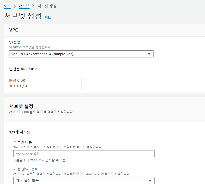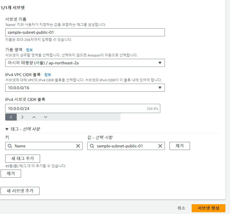서브넷만들기
