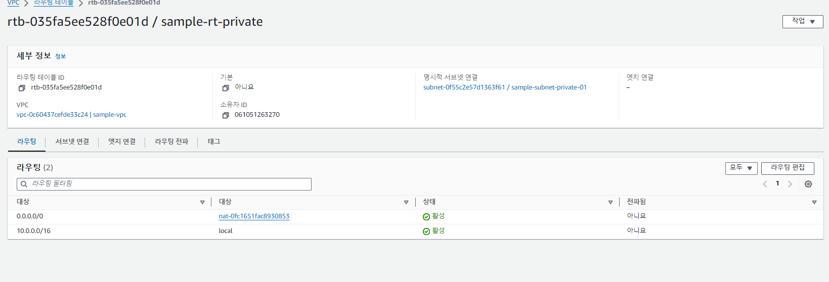 private 라우팅테이블