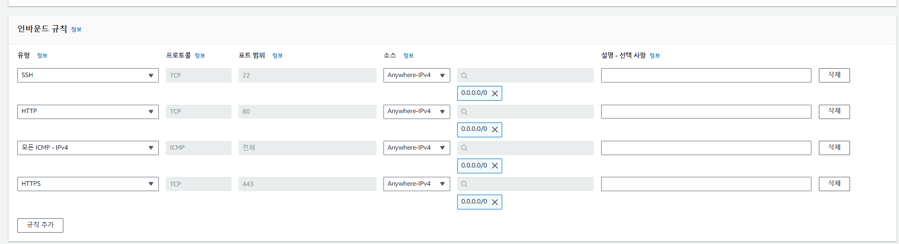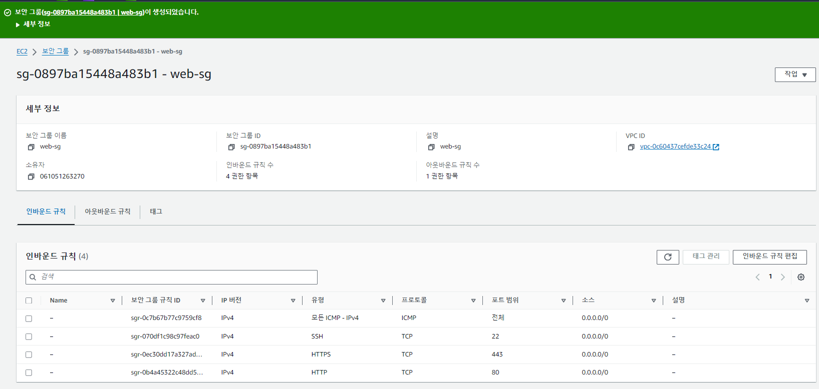보안그룹 생성완료