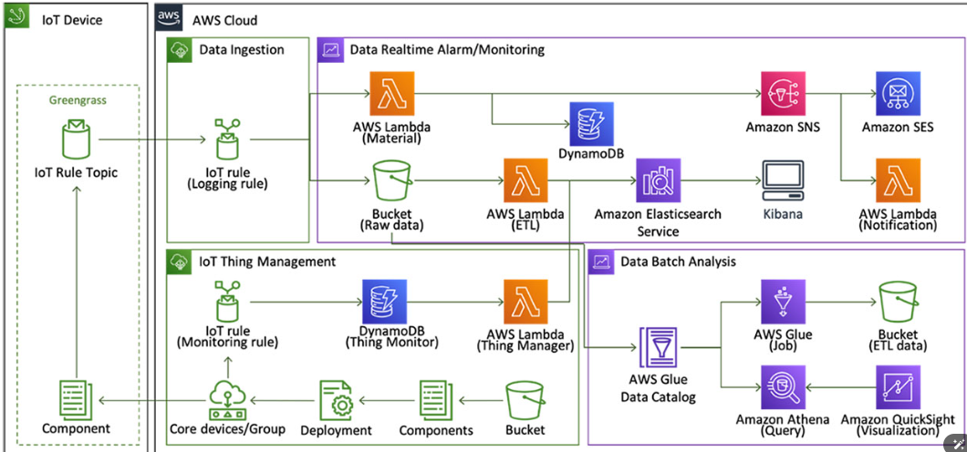 - IoT 장비의 데이터는 AWS IoT Greengrass를 통해 수집.
