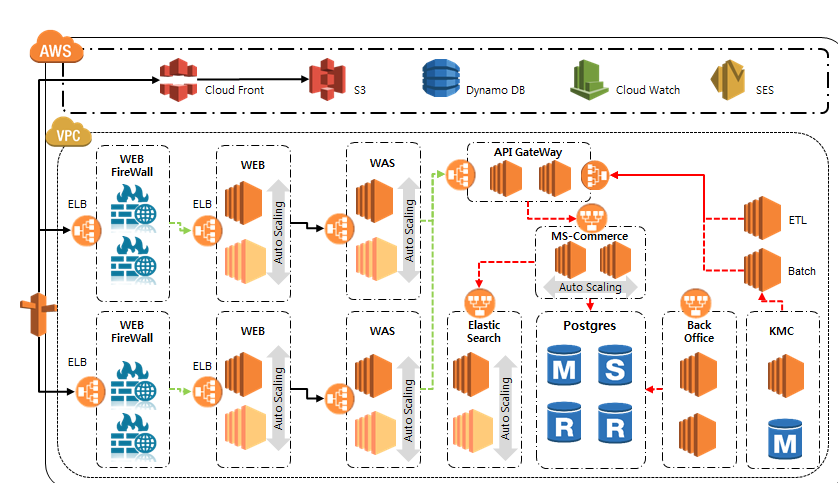 - Amazon S3: 이커머스 서비스의 이미지 관리를 위해 사용됩니다.
