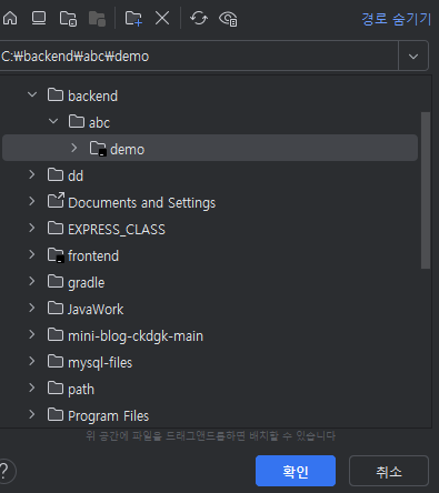 "demo"라는 프로젝트명으로 저장하였습니다.