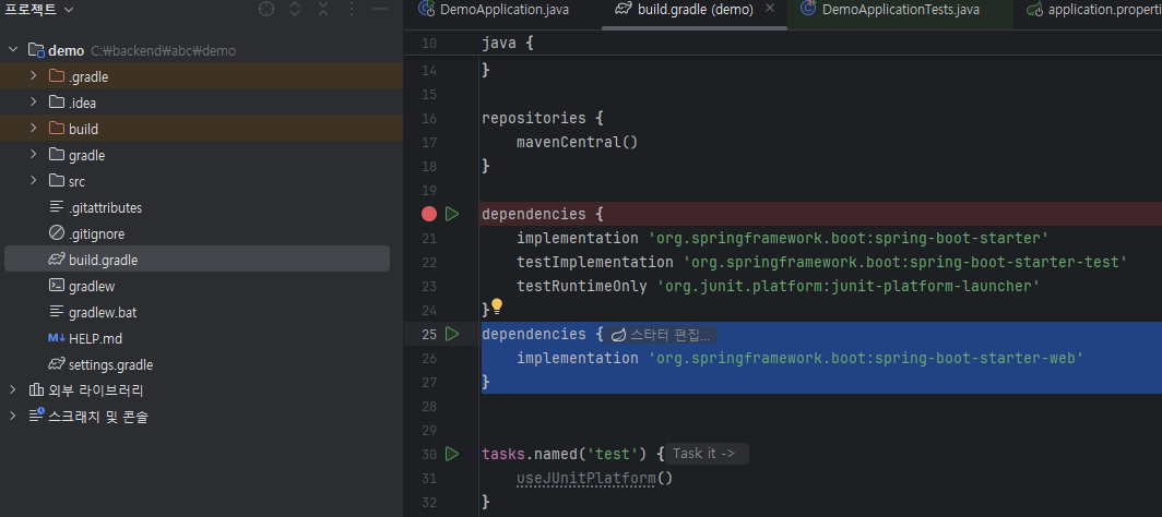 bulid.gradle에서 의존성을 추가해주어야 합니다.
