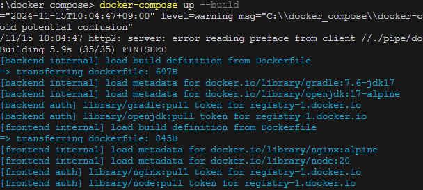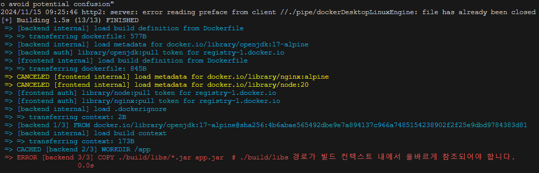 compose build 시 아래와같은문제로 빌드가 안된다 ..