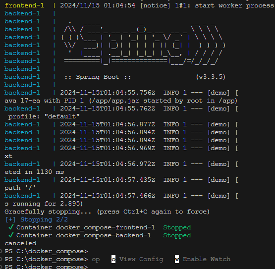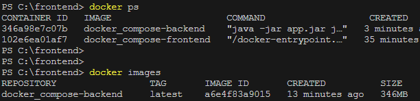 346a98e7c07b docker_compose-backend "java -jar app.jar j…" 3 minutes ago Up 23 seconds 0.0.0.0:8080->8080/tcp docker_compose-backend-1