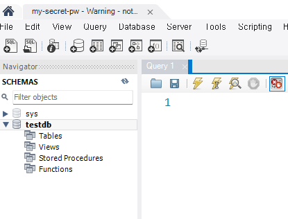 mysql-container 도커 삭제후 다시 생성하여 내용이 초기화된 모습