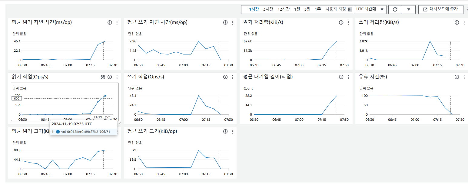읽기작업이 올라감 (프리티어라서 그런듯합니다)