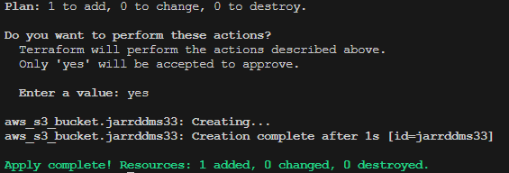 Plan: 1 to add, 0 to change, 0 to destroy.Copy