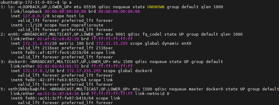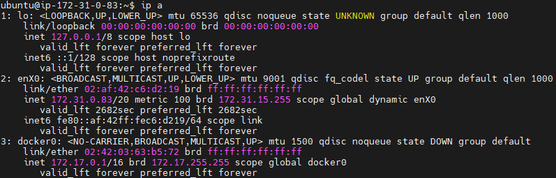 ubuntu@ip-172-31-0-83:~$ ip a