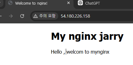 vi 설치후 /usr/share/nginx/html/index.html 파일을 수정한다.