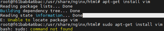 bash 쉘안에서 apt-get install vim 처음엔 실행되지않는 문제가 있음