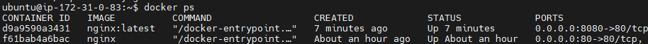 ubuntu@ip-172-31-0-83:~$ docker ps