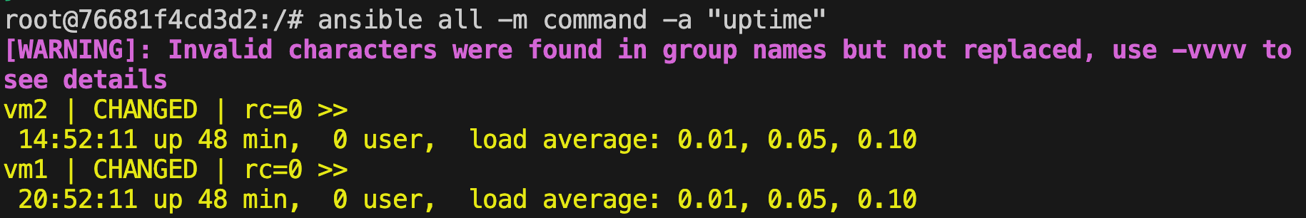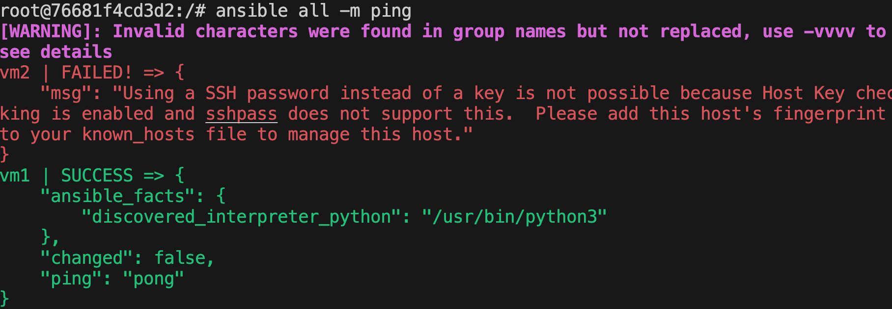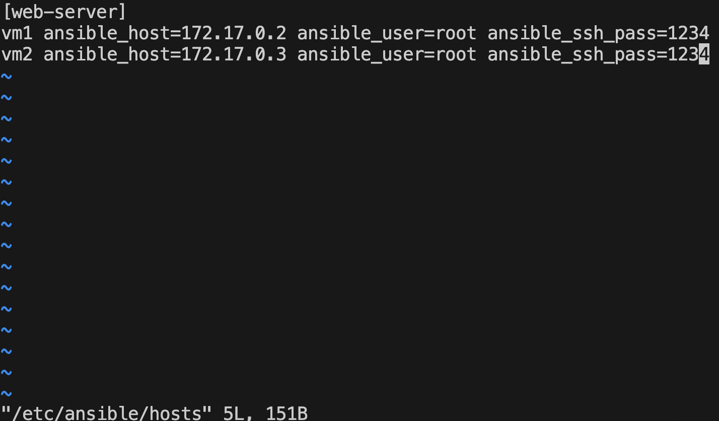 이제 vm1 vm2를 호스트를 ansible 서버에 알려주는 명령어를 입력한다.