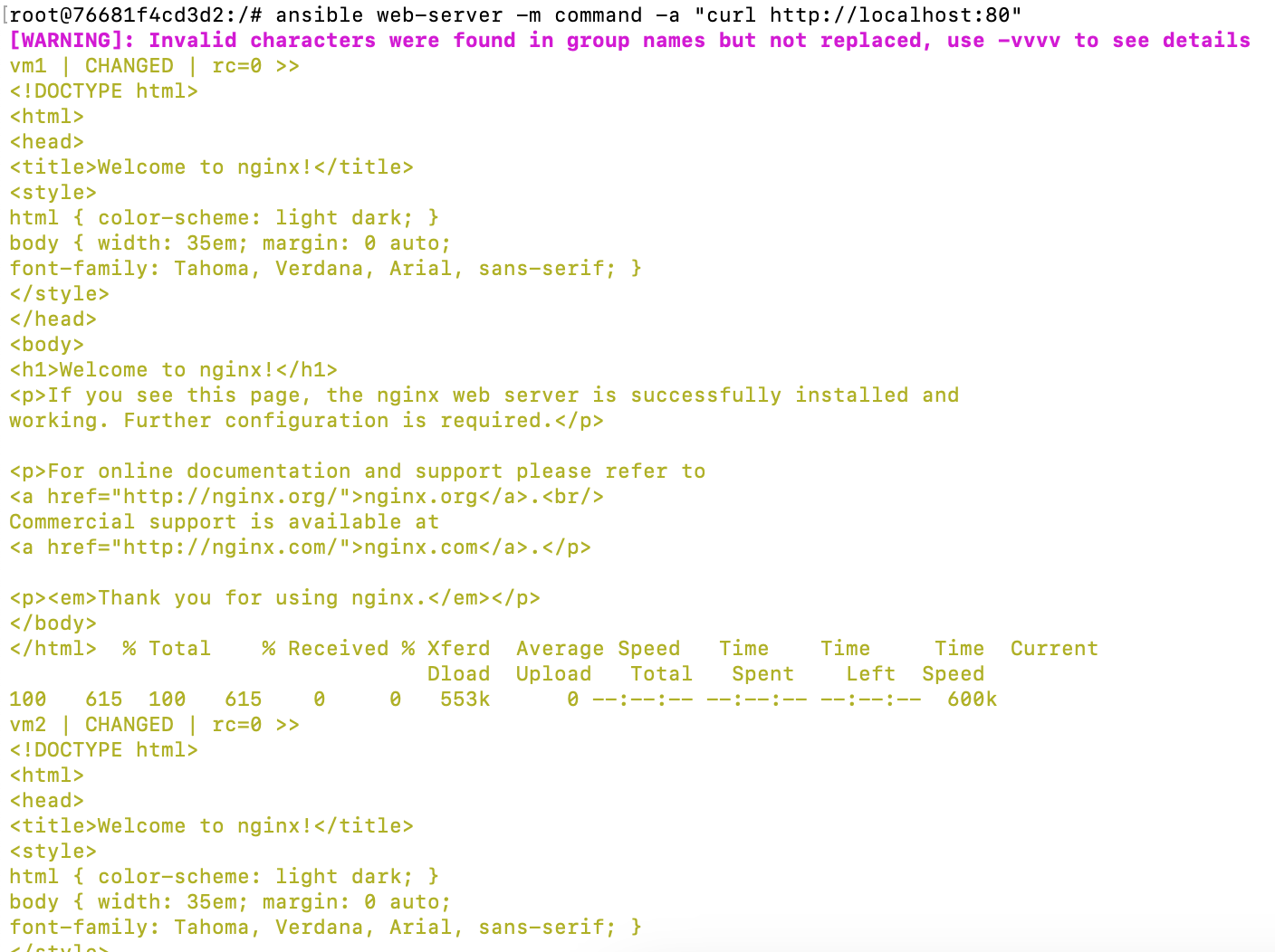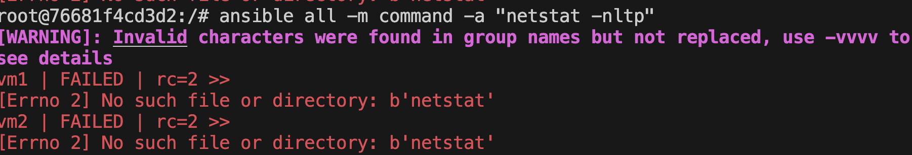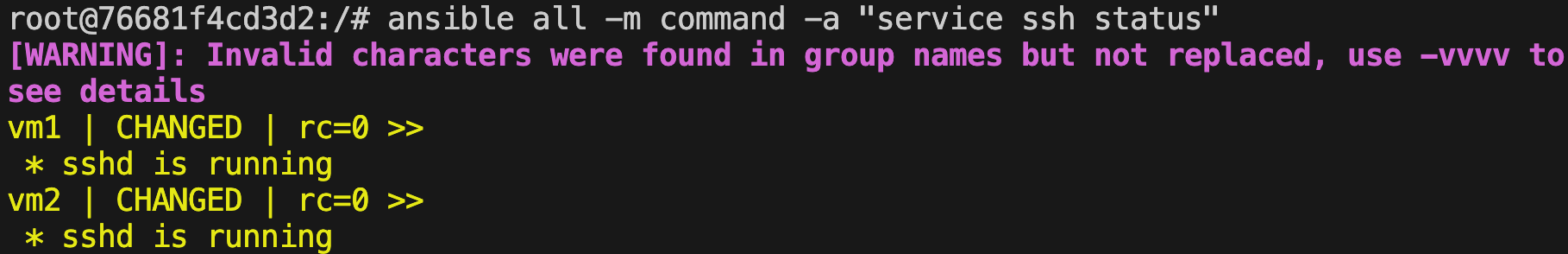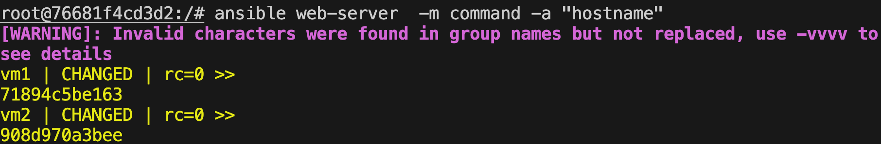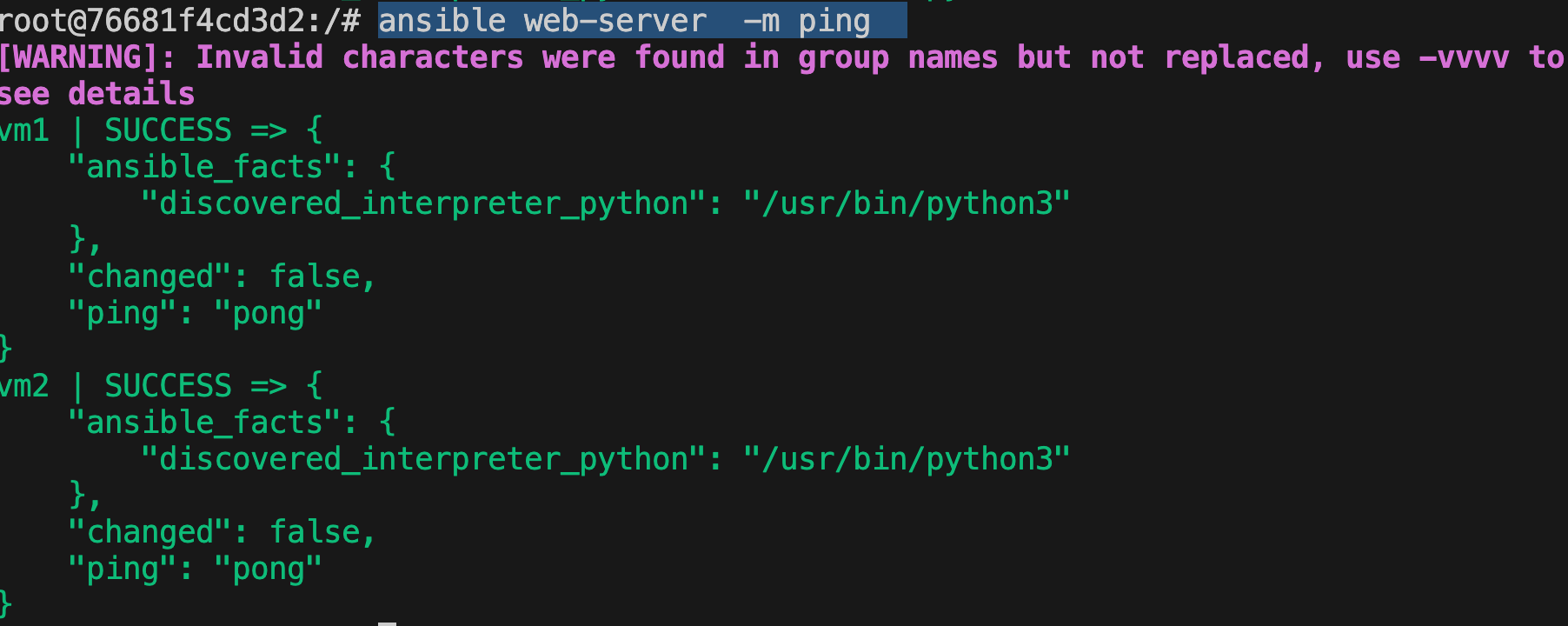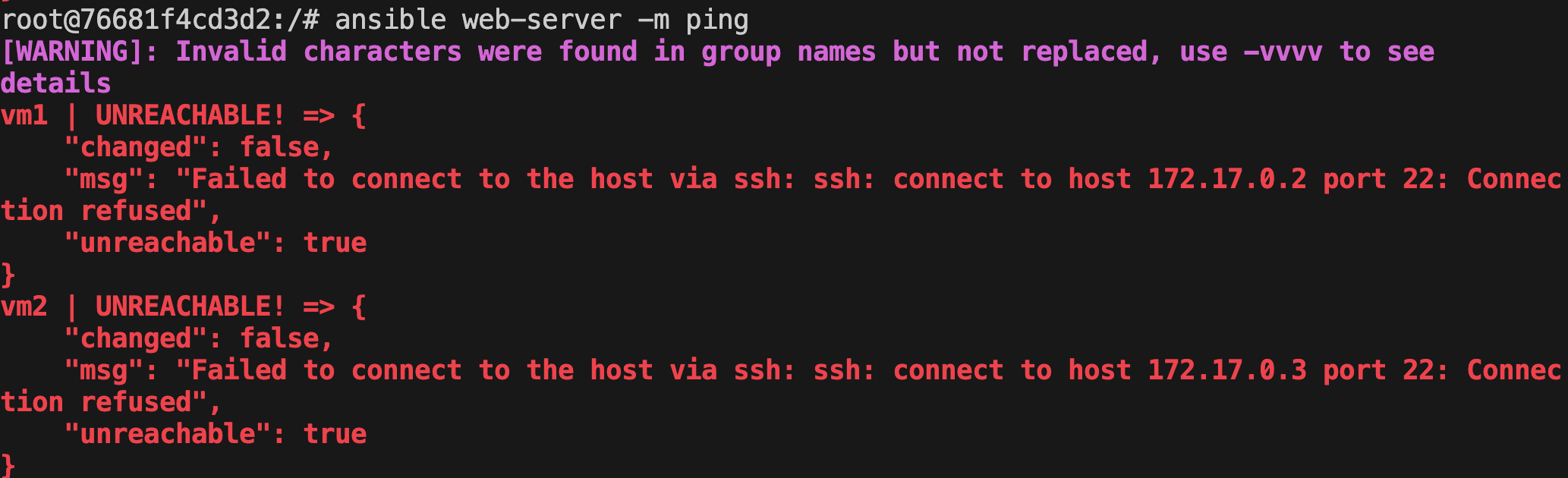 - 예를 들어, vm1 컨테이너는 172.17.0.2/16의 IP를 가지고 있고, ansible-server는 172.17.0.4/16을 가지고 있습니다.