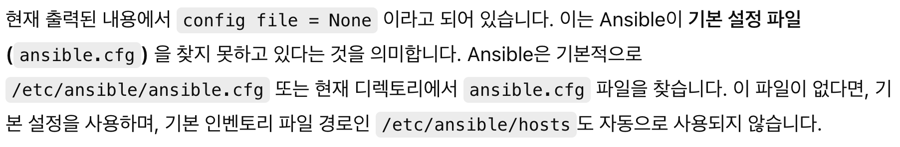 - Ansible 관리 대상 서버 정의: Ansible이 자동으로 원격 서버와 통신하려면, 어떤 서버들을 관리할 것인지 지정해야 합니다. 이 파일에 관리할 서버들의 IP 주소, 호스트명 또는 그룹 이름을 정의합니다.