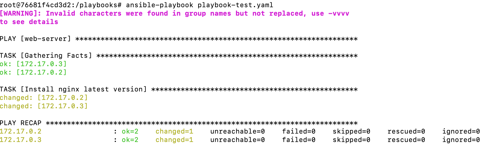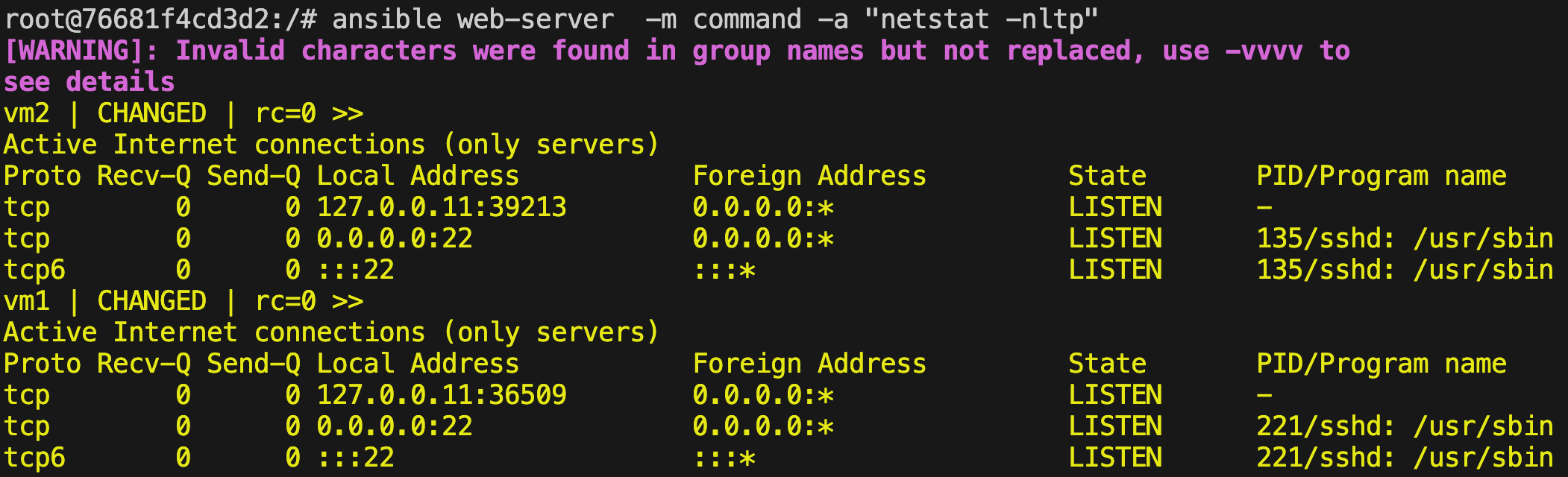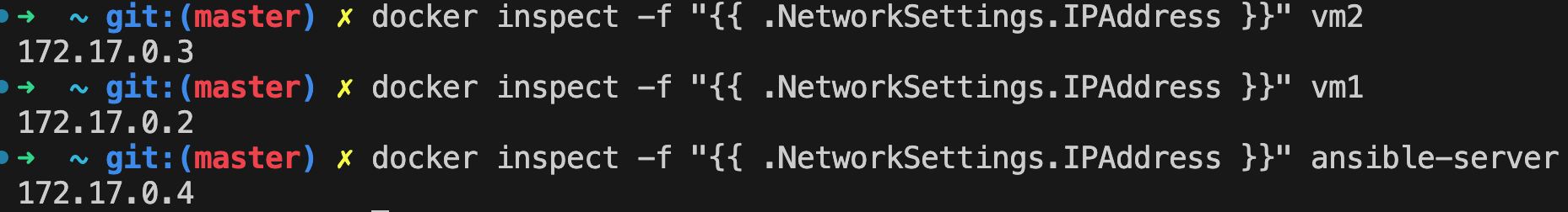 docker inspect -f "{{ .NetworkSettings.IPAddress }}" ansible-server