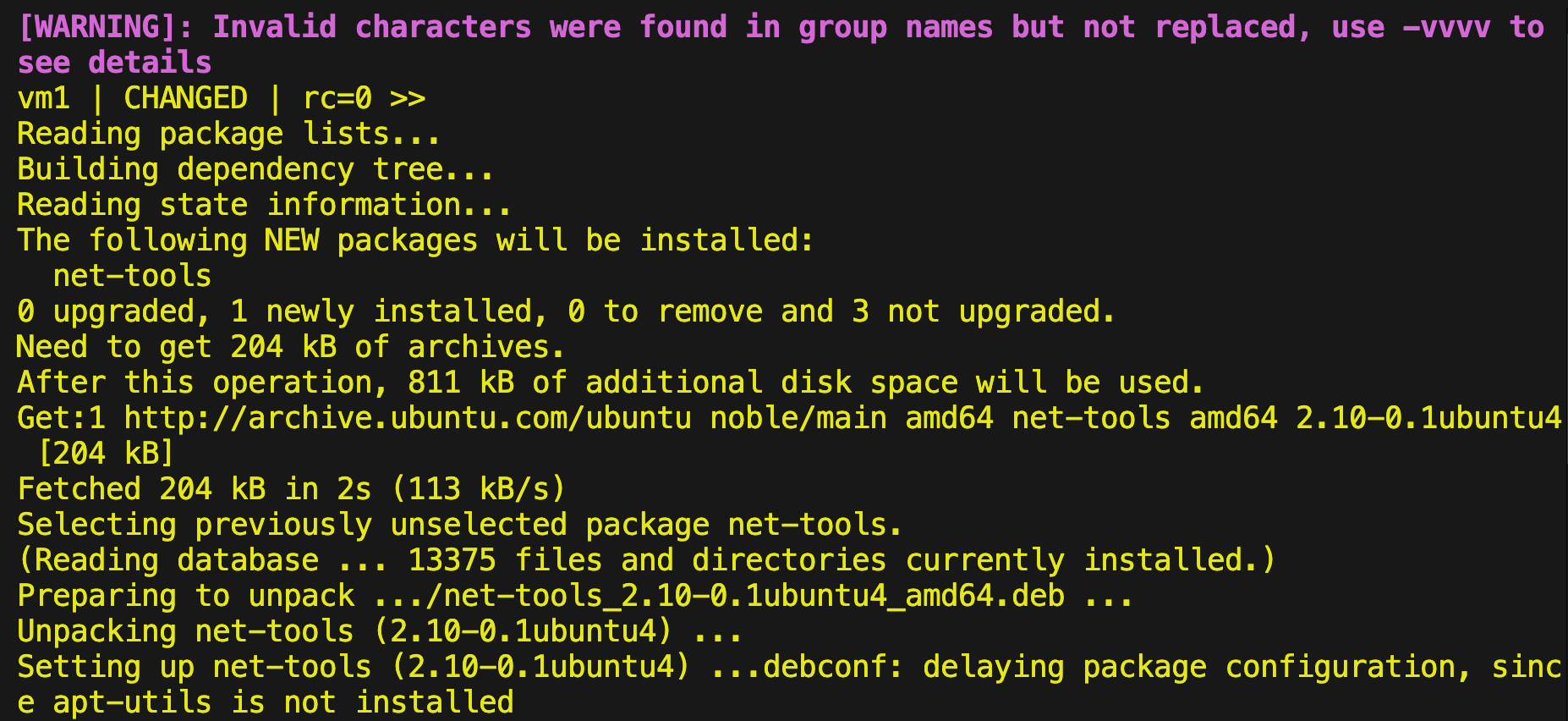 4. ansible에서 명령어 입력하여 시스템 상태및 vm1 vm2 동시에 프로그램설치 확인