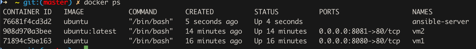 ➜ ~ git:(master) ✗ docker run -it -d --name ansible-server ubuntu