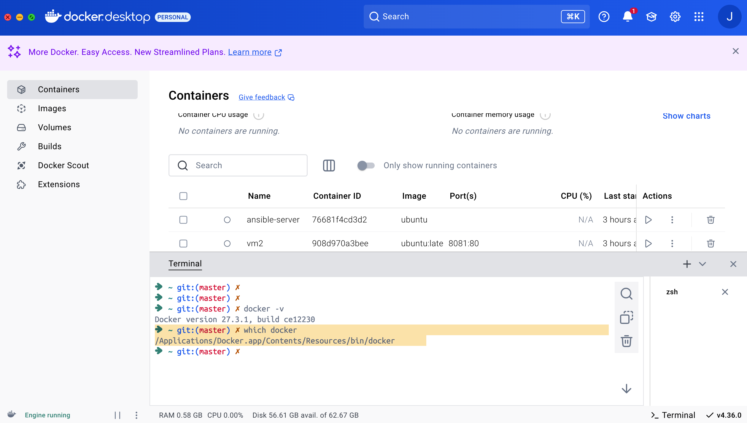 ➜ ~ git:(master) ✗ which docker