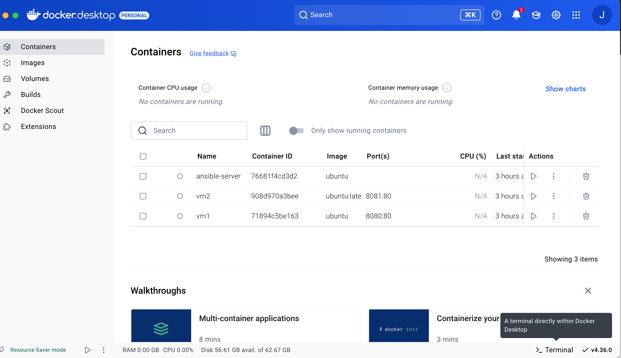 먼저 도커허브가 설치되어있다면 도커허브 실행후 좌측하단에 있는 도커전용 터미널을 클릭한다.
