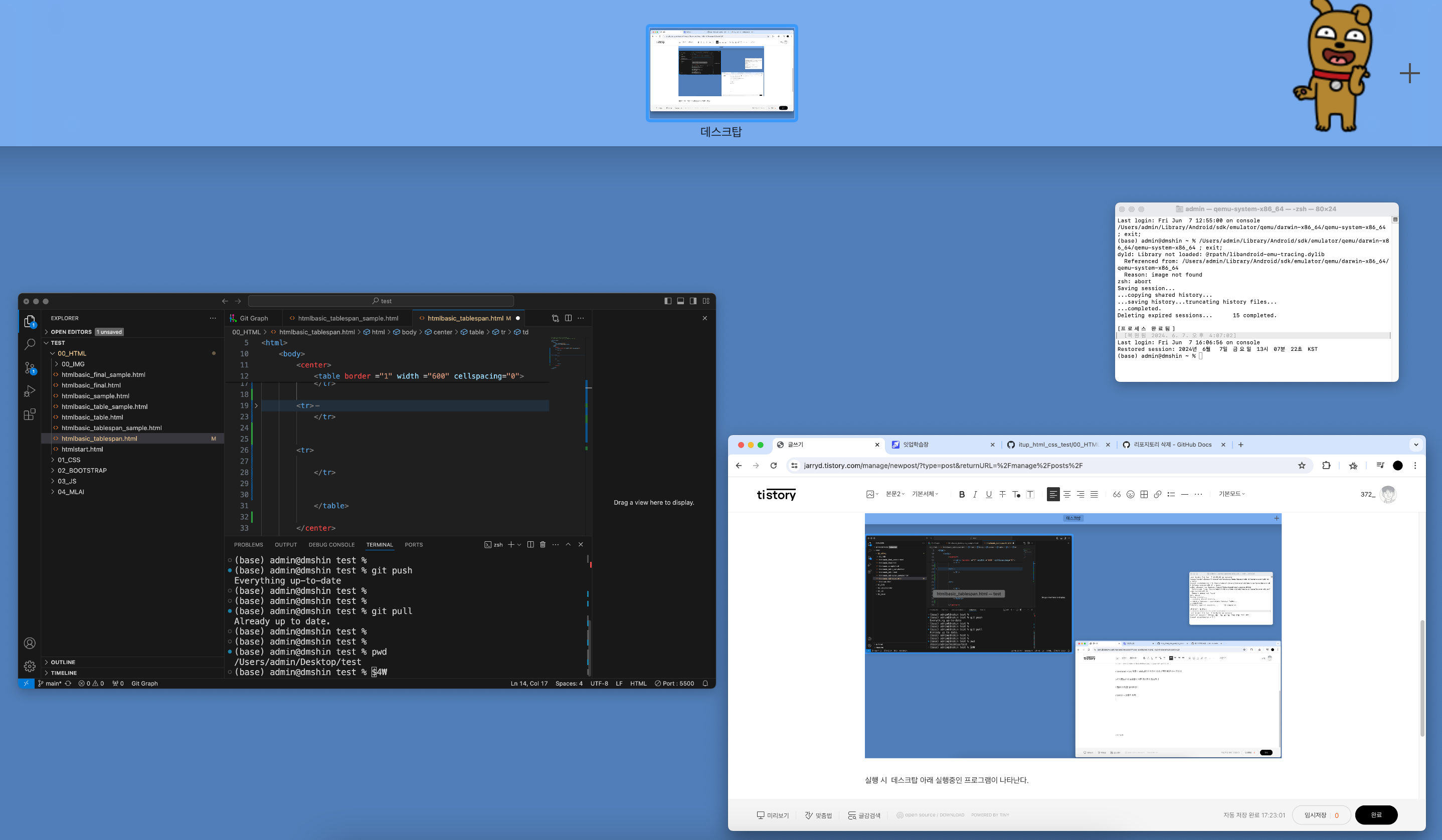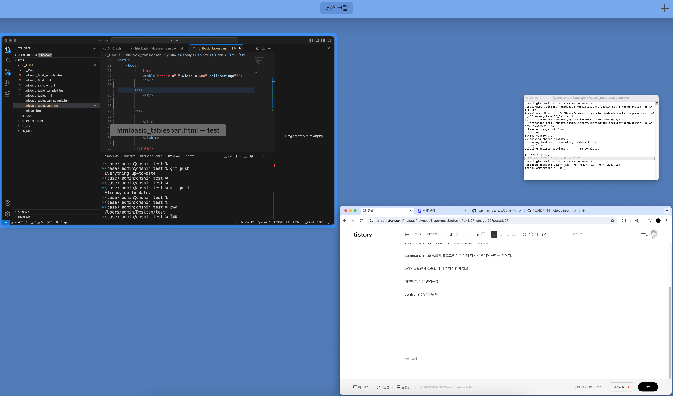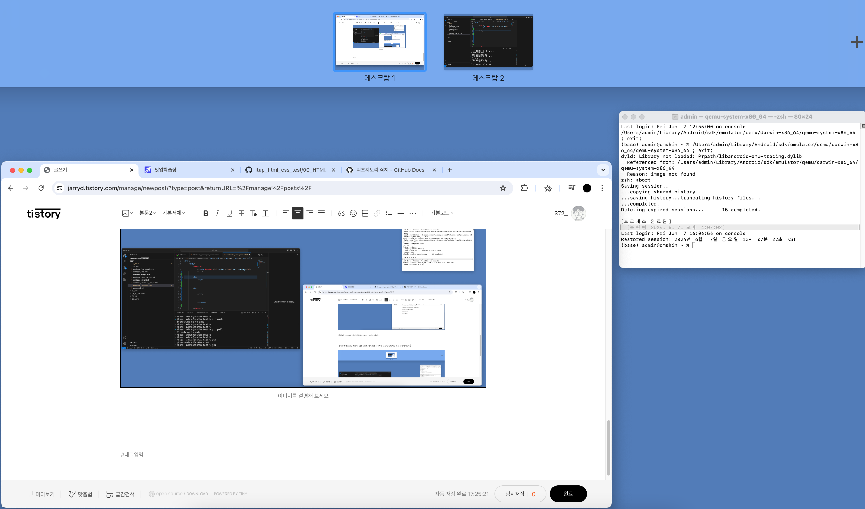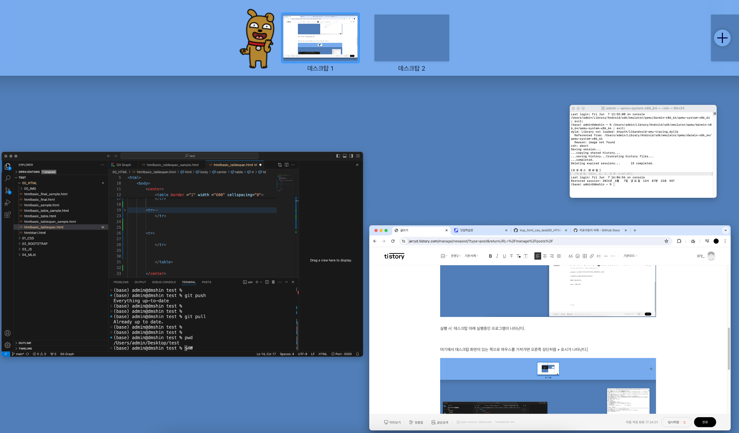 control + ← , →(방향키 왼쪽 오른쪽) 눌러보면 화면전환이 잘된다. 완성이다.