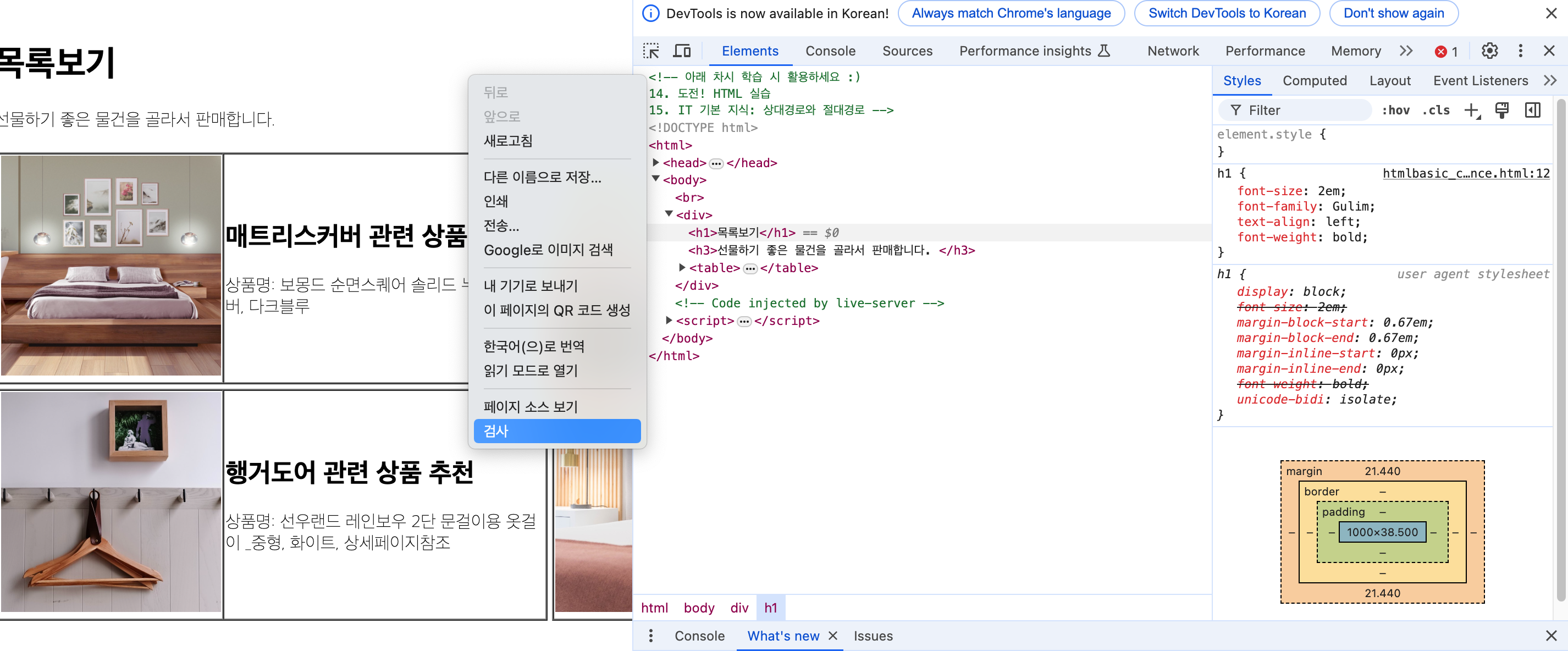 [크롬/개발자모드 ] - css box model 체크