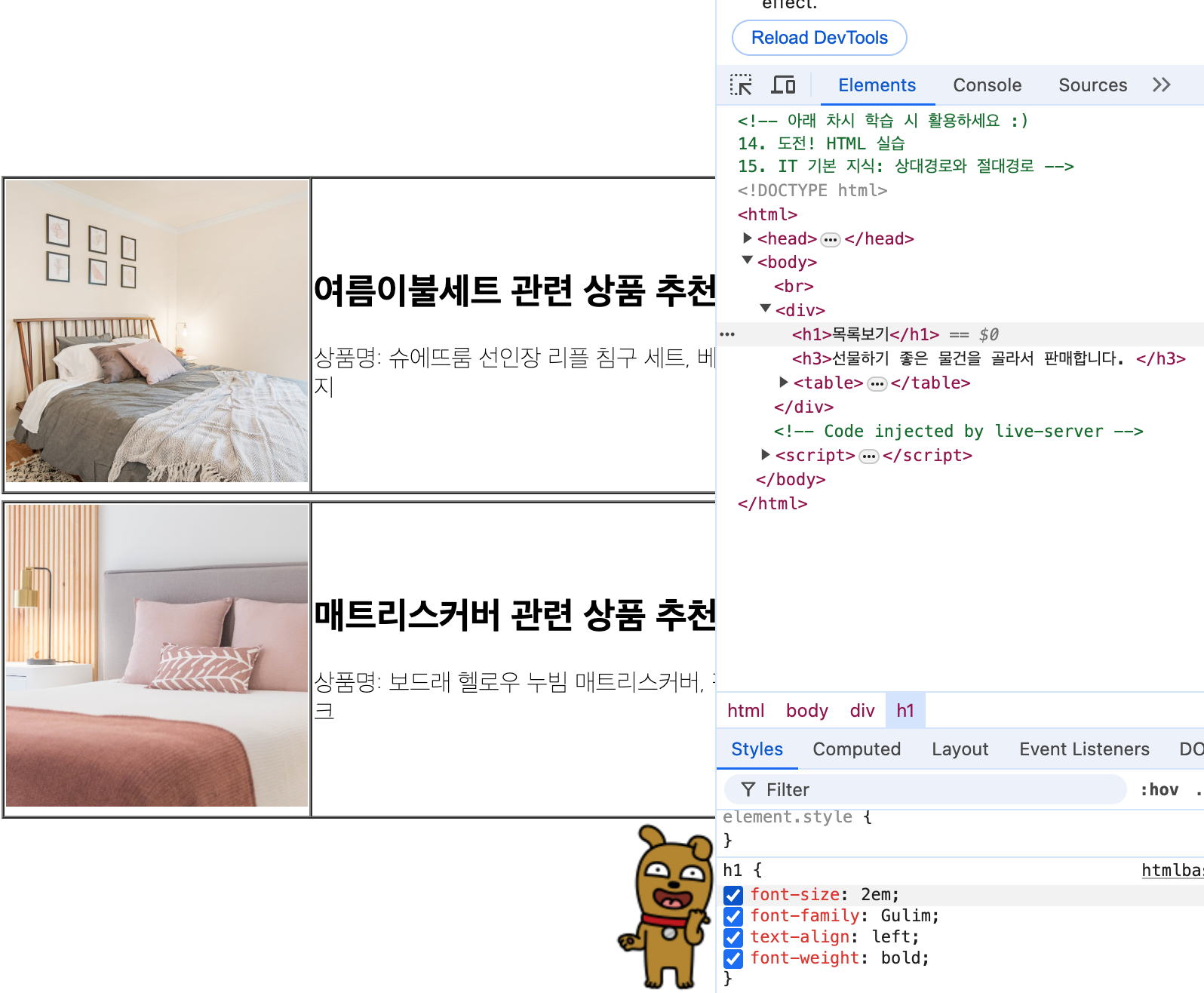 [실습예제 - 1차수정] boder 속성 적용
