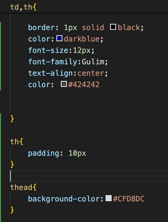 이미 td , th { } 에 대해 정의되어있는상태에서도 th만 따로 지정할수 있다.