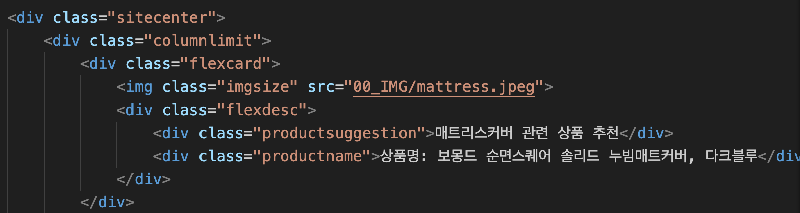 기존코드 확인결과 <div class = "sitecenter">를 통해 상품들의 가운데 정렬을 해놨음