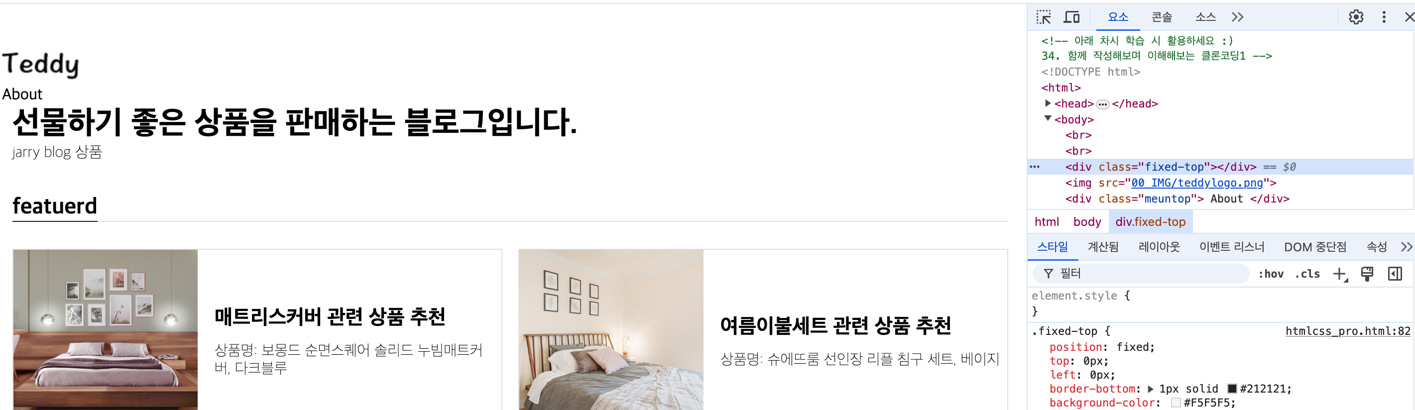 [실습예제 - 수정 ] 최상단 "Teddy" 로고 수정