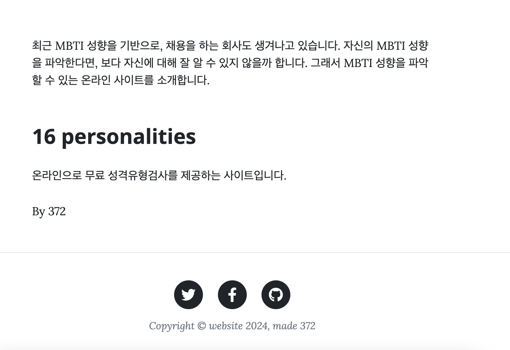 <h2 class="post-title">MBTI 사이트 소개 <p class="post-meta">