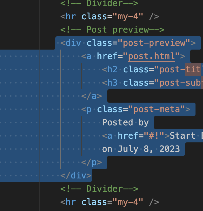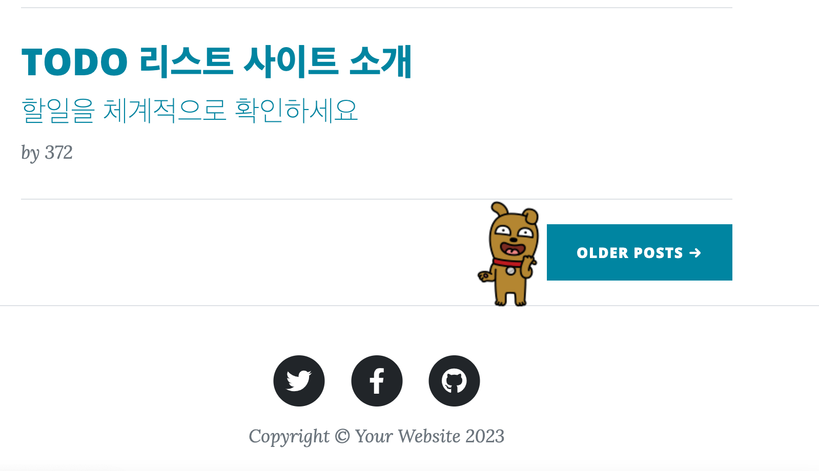 필요없는 부분은 코드를 찾아서 삭제한다. [OLDER POSTS] 삭제