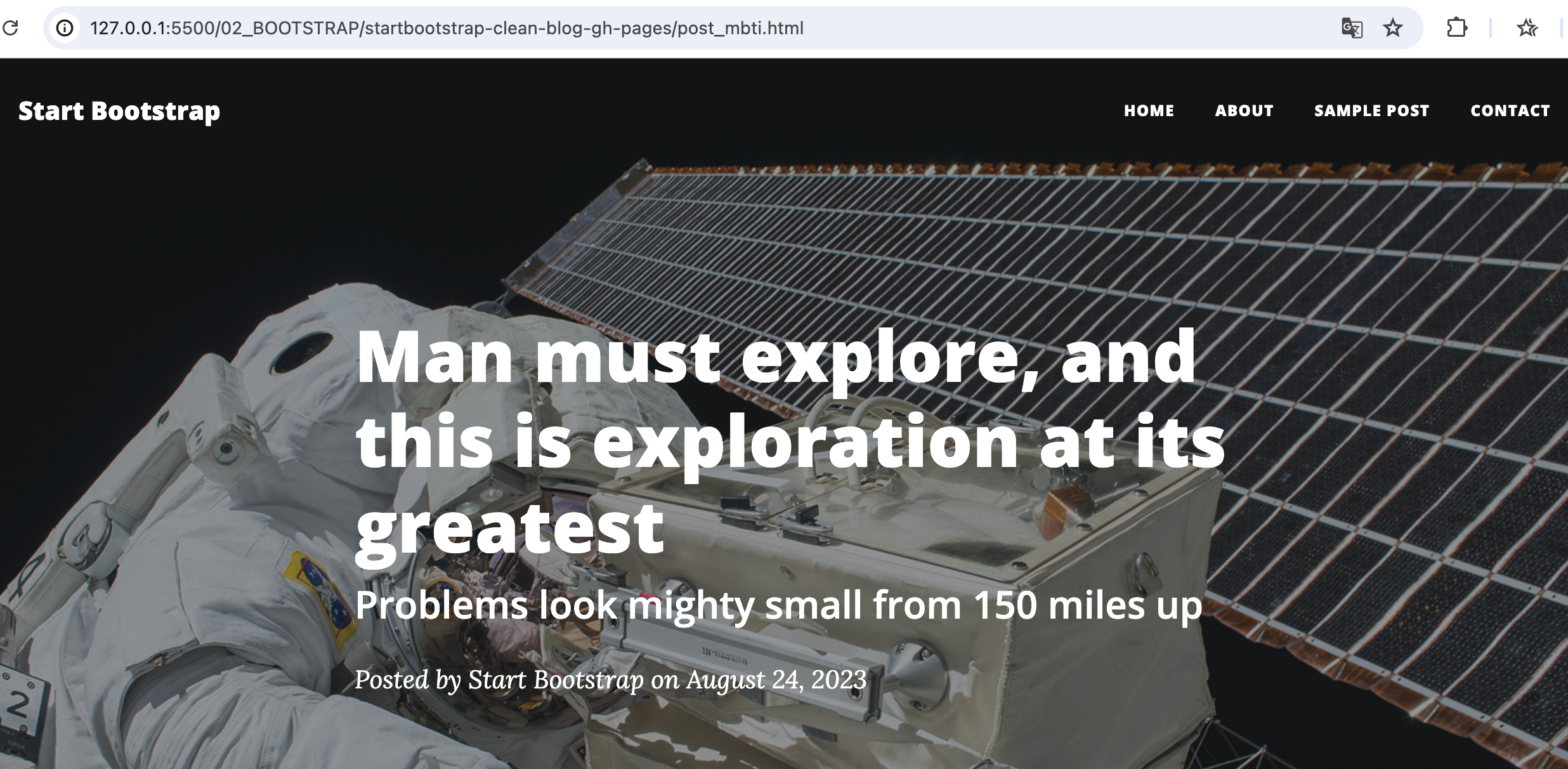 | [Bootstrap]step.2 Bootstrap 템플릿 활용하기 (0) | 2024.07.02 |